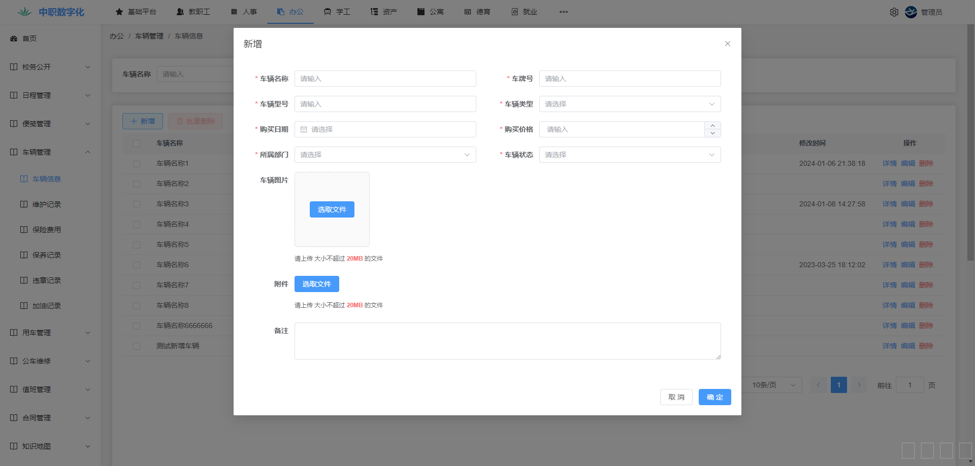 OA管理系统整个系统包含了众多的模块:校务公开、日程管理、便笺管理、车辆管理、用车管理、合同管理、知识地图、会议室管理、公文流程设置、发文管理、收文管理、印章管理、规章制度、短信管理、投票管理、工作管理、自定义表单等模块。